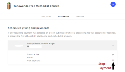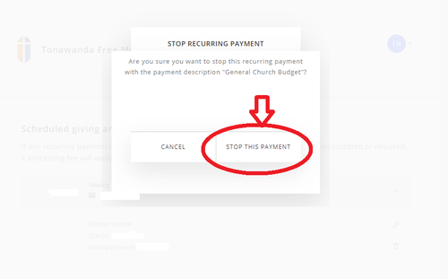 then cancel your current recurring gift with Easytithe using the steps below.
